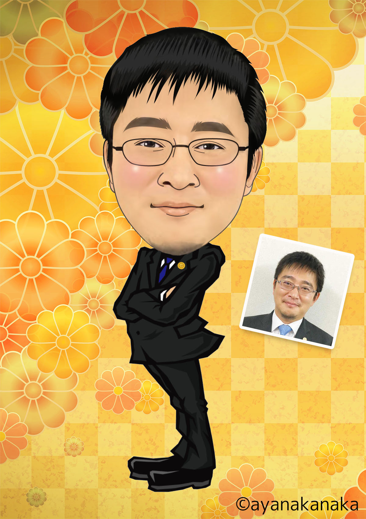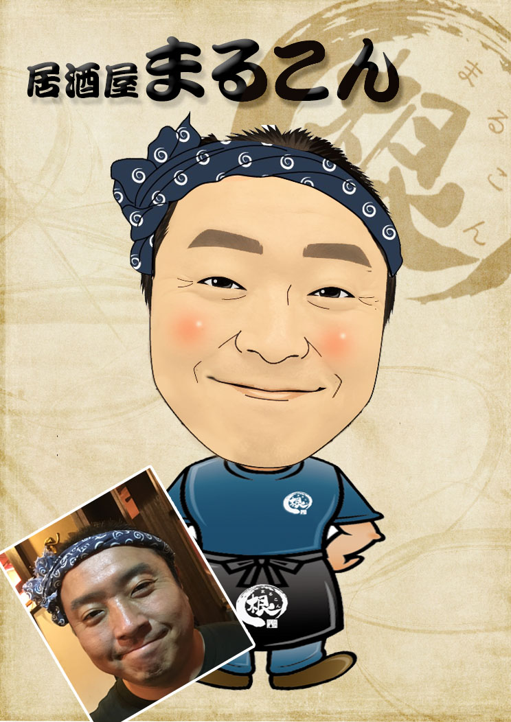 似顔絵1-名刺用に 似顔絵2-ビジネス活用に 居酒屋まるこん大将 ビジネス利用に 卒業お祝いワインラベル ウェルカムボード 名物大将のキャラクター イラスト・似顔絵似顔絵 そっくりだけど、なんだかコミカル? オリジナル似顔絵を作成いたします